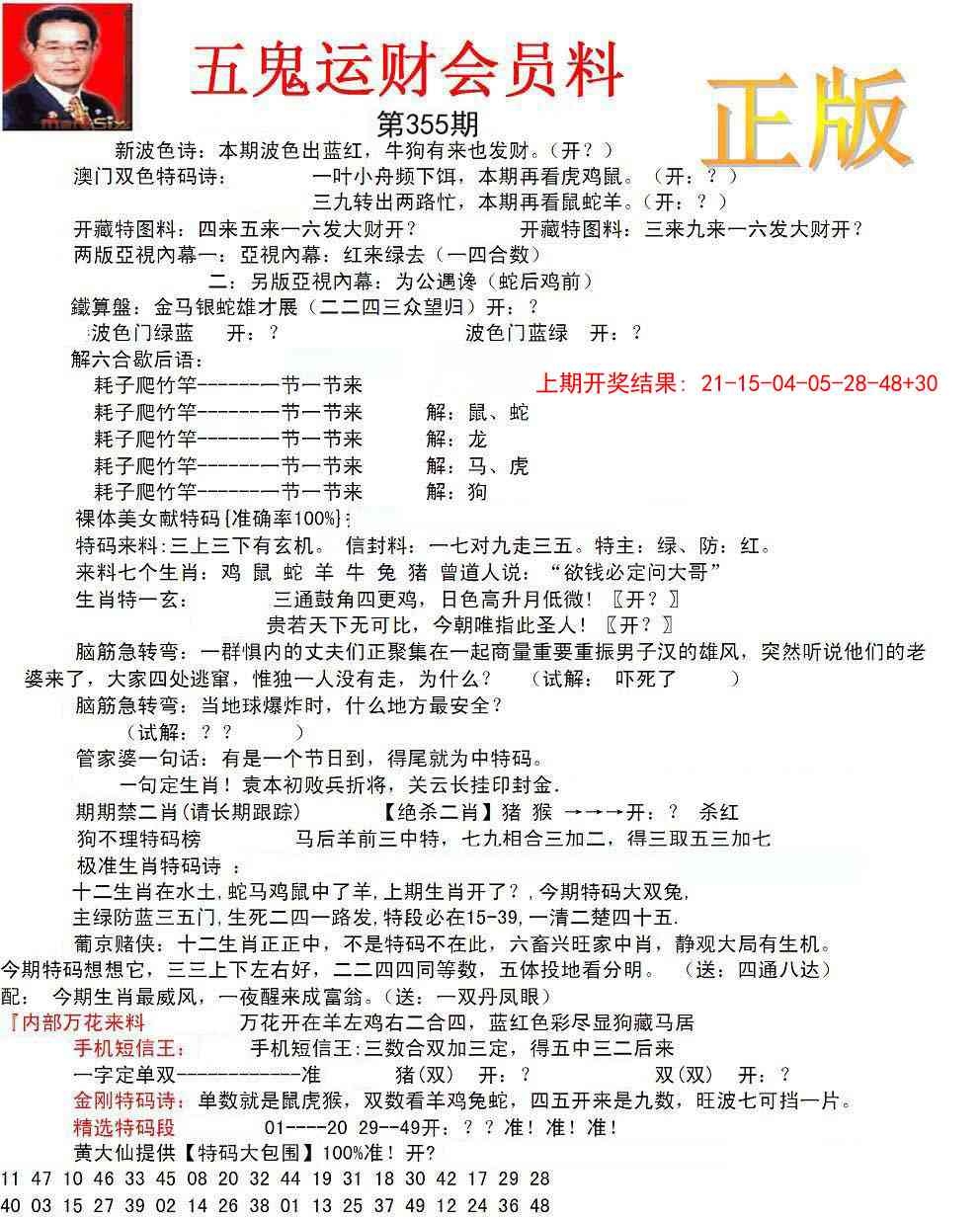 正版五鬼运财会员料